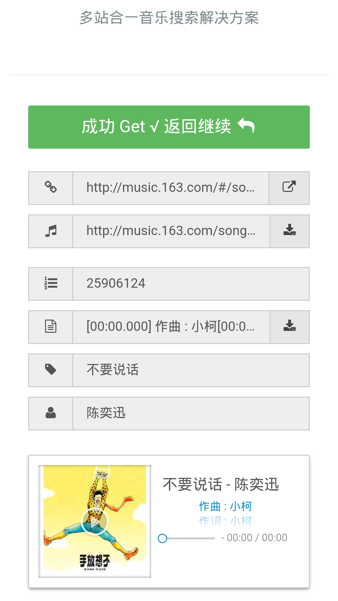 免费音乐app,一款能够全网免费搜歌的手机软件,支持着多个第三方音乐平台,像是网易云、酷狗、QQ、咪咕等等,大家可以通过音乐名字ID或是音乐地址来快速的寻找到音乐资源,能够自由的下载,非常的给力哦,感兴趣的小伙伴快快下载免费音乐吧!