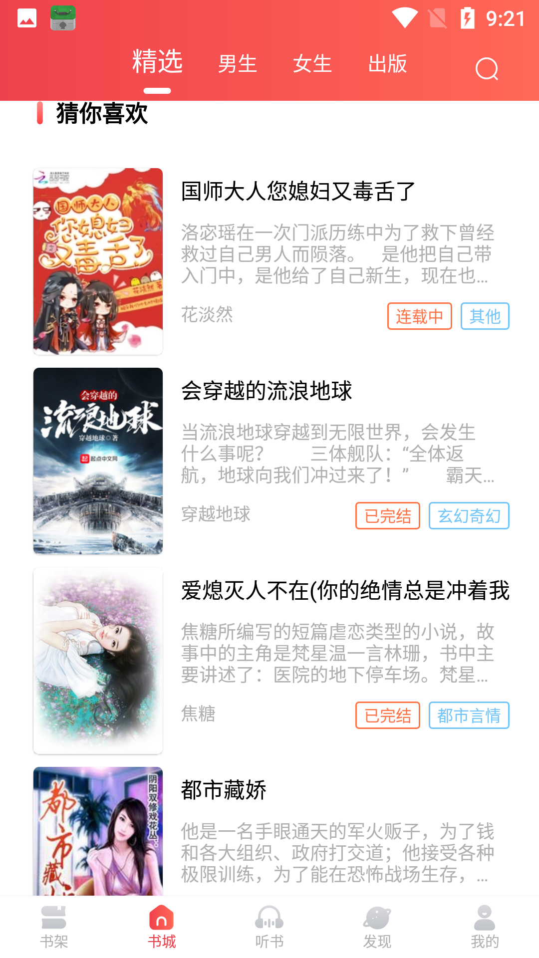 不用担心书籍短缺,这里的小说资源非常全面,您可以看到各种流行小说。