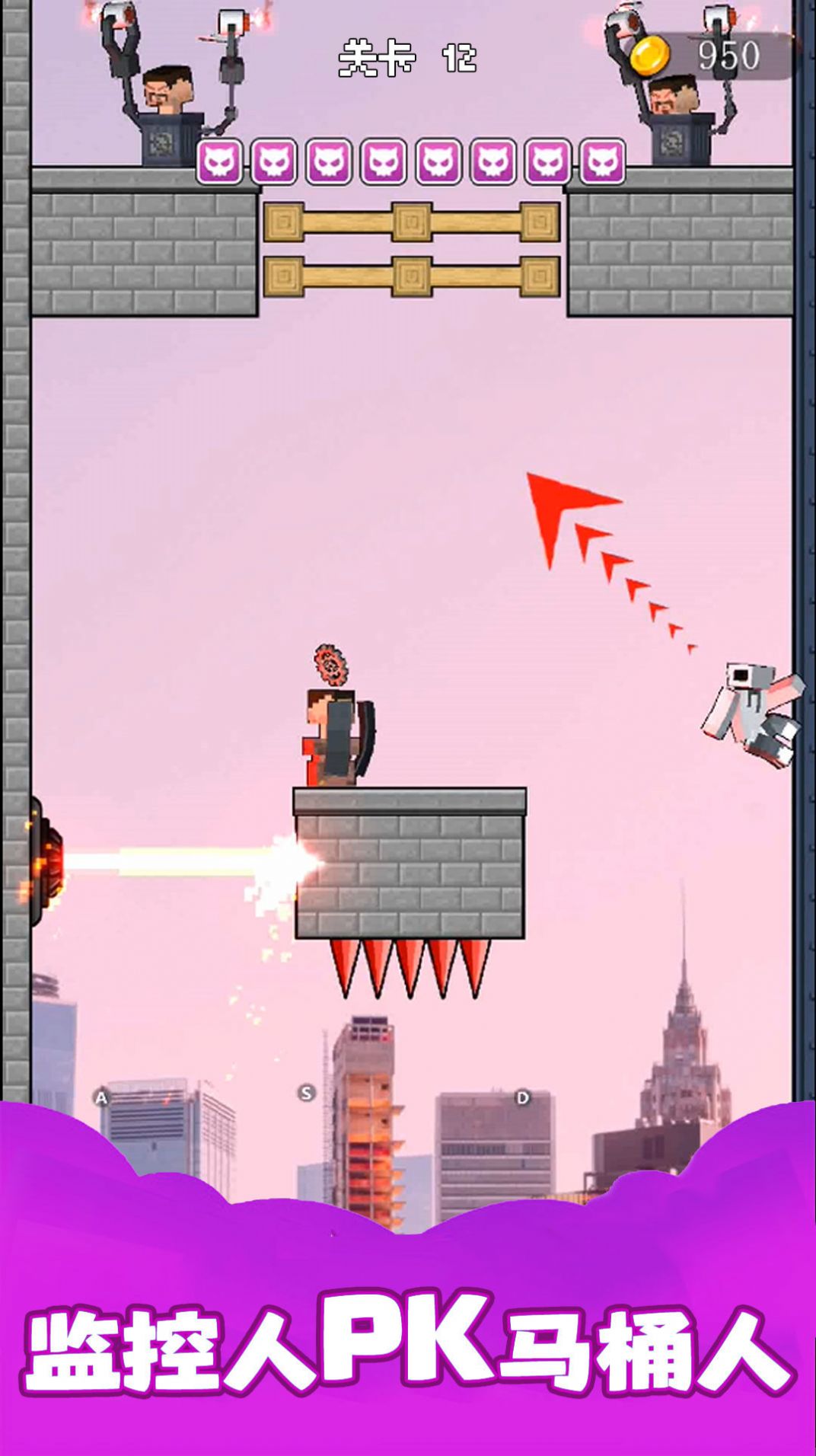 利用你敏捷的身手,去时刻准备挑战,干掉马桶人获胜