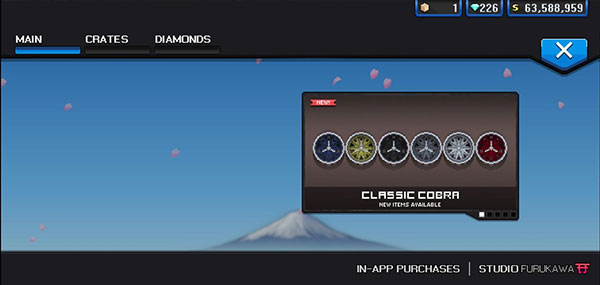 目前就更新了一个新的钻石涡轮,性能和黑金涡轮一样就是轻了点,而且貌似在以前版本买了no ads(没有广告)的玩家这个涡轮会变成红色,只不过现在不能买了,只能说是对氪金玩家的一种补偿了;