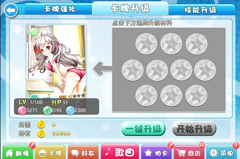 卡牌的养成主要分为卡牌升级、卡牌强化、技能升级。