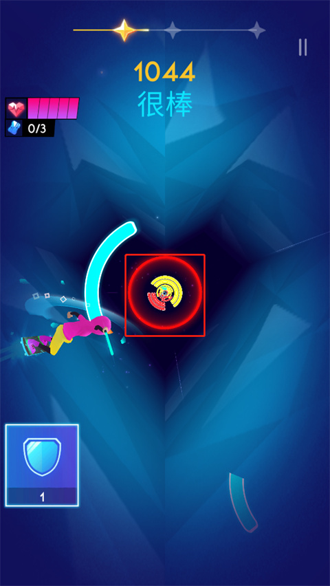 当玩家遇到带有颜色的光环就需要注意了,这是玩家需要击打的颜色会发生改变,击打的颜色就是光环的颜色;
