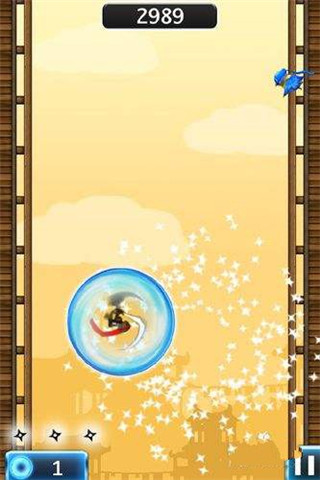 连续击打三只飞鸟时,人物能化做一只飞鸟往上飞