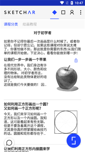 Sketchar 安卓中文版的免费版本会给用户设置画图学习的专门区域,给刚开始学的人说明操作的步骤以及画图方面的知识,能让您迅速学会画图的技巧,因此那些从来没接触过画画的用户不必发愁。