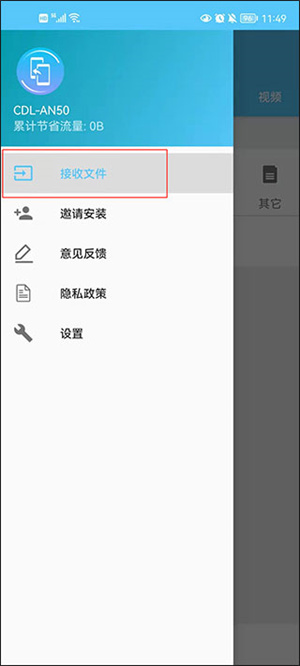 在软件的左上方设置当中,可以将两部的手机进行一个同网络的链接,这样就可以进行传输文件啦。