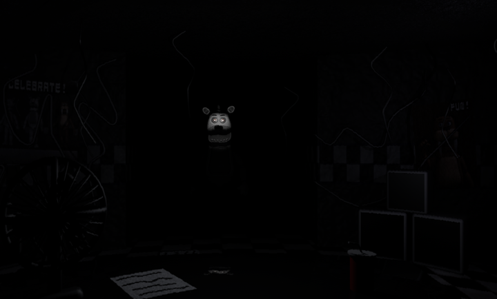 第六夜开始出现,两种攻击方式,如果发现他出现在左侧(BB的位置)立刻戴头套,戴上就走,反应时间小于老玩具,如果是正门手电筒照到他的大脸,同上,反应慢了就跳杀(图真的难找)