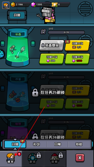 过了主线任务11.将会解锁召唤内容,最先被召唤的是装备以及防具,顾名思义装备是帮助冒险家们提高战斗力的,防具则是提高角色生命值,帮助冒险更快的完成主线任务,每天开通特权后将会有三次免费召唤的机会,继续召唤想要使用1500钻石,可召唤35次。
