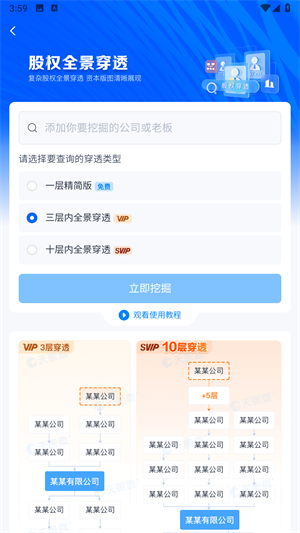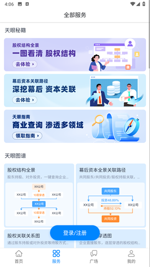 打开软件,进入服务专区,选择天眼密集功能模块。该模块专为企业股权结构查询设计,界面简洁,操作直观。