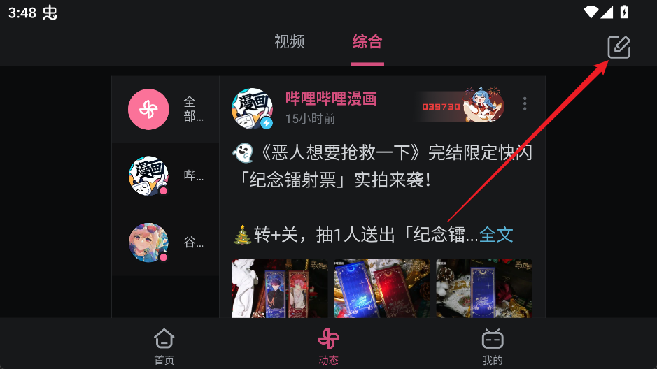 在动态页面点击编辑/发布按钮,即可进入投稿界面。