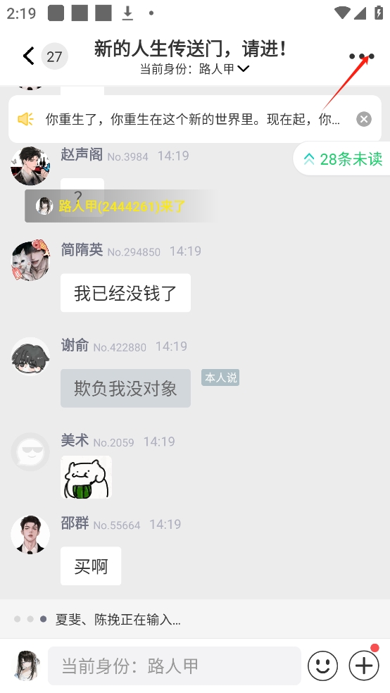 在群聊界面中,点击右上角的【···】,跳转至新的界面。