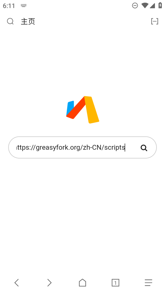 在本站下载安装好via浏览器,打开之后,在浏览器搜索栏中输入Greasy Fork脚本网站