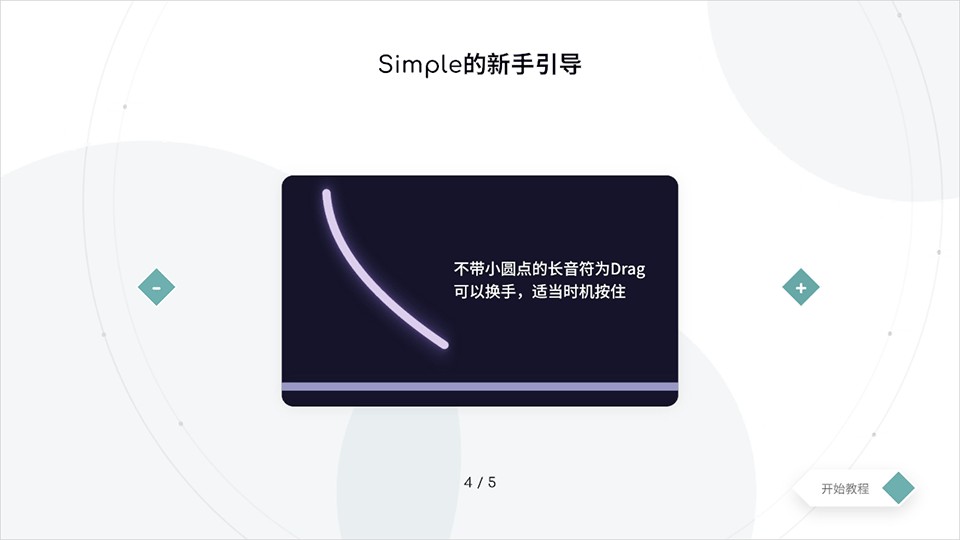 熟悉键型:simple有且只有四种键型:tap、hold、drag和slide