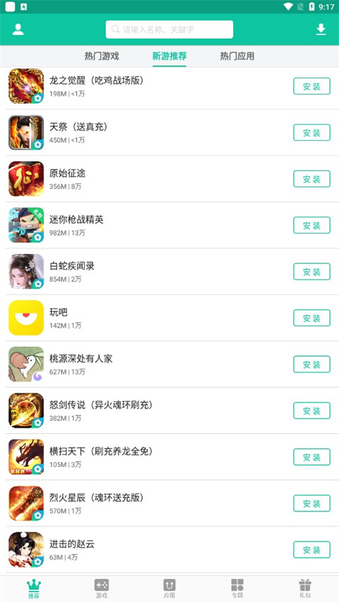 首页:可以看到很多热门游戏的特殊或bt版本可以直接下载安装。