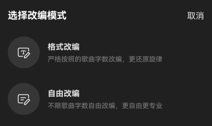 选择改编模式,有格式改编和自由改编,区别就是字数的限制。