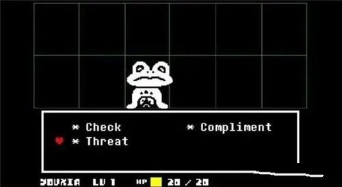除了杀死怪物之外,玩家还可以在“act”动作选项中选择相对的行为,选择之后怪物会做出相应的反应,用文字或者画面展现在上方的对话框中。