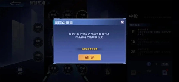 在属性加点系统中,还加入了重置的功能,帮助那些想要更改球员属性点的玩家重新加点,但是需要注意的是重置后只会返还球员已使用的专属属性点,不会再返还通用属性点。并且每一个球员除首次重置免费外,后续再重置需要支付相应的银球币,一个重置的次数越多,支付的银球币也会增加。所以玩家每次加点的时候一定要慎重一点!