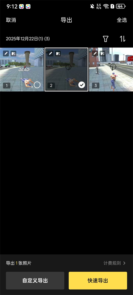 勾选需要导出的图片,支持【自定义导出】和【快速导出】;
