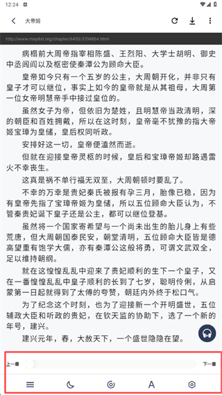 进入小说阅读页面后,点击屏幕中间呼出菜单进行阅读设置。