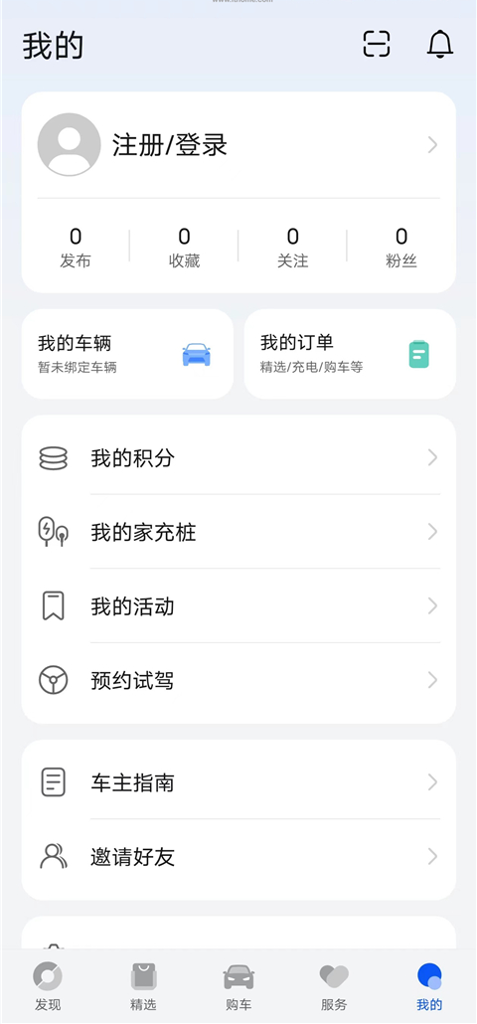 目前该软件支持远程控车(车锁、车窗、后备箱、空调等)、实时查看车辆情况、线上预约试驾、用户社区、充电地图等一系列功能。涵盖发现、精选、购车、服务、我的五大版块。