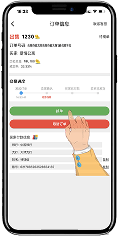 点击接单按钮,确认您要卖的豆数。