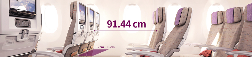 伸腿空间座位比一般经济舱座位的伸腿空间至少宽 16 厘米,加宽的座位可让您的旅行更加舒适。
