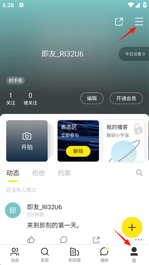 打开即刻APP,点击我的-右上角三线横杆;