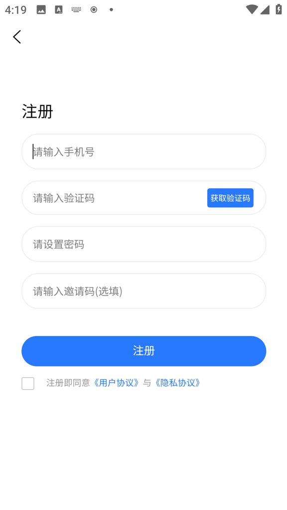 输入手机号接收验证码即可注册