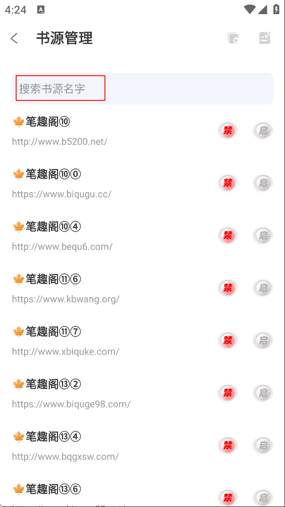搜索想要禁用的书源名