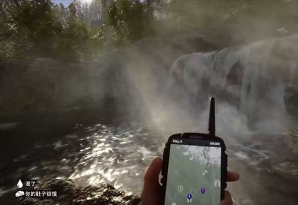 来到女野人可能刷新的第1个位置:如图所示的瀑布旁边,如果她不在,我们继续去下一个位置。