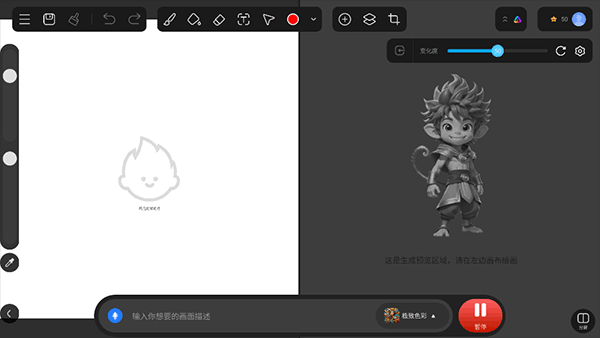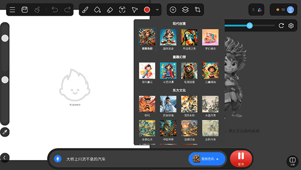 AI转化:内置AI算法,能够将手绘涂鸦或图片素材实时转变成具有艺术感的AI绘画作品。