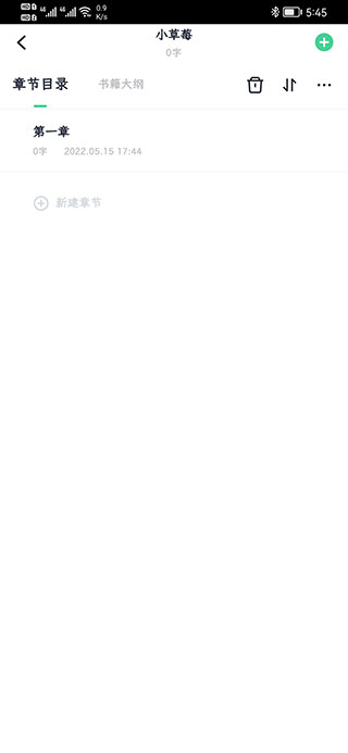 书籍是没有章节的我们点击新建章节,列表出现第一章,点击文字进入编辑界面。