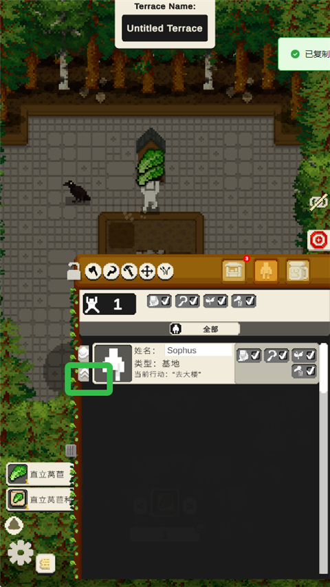 玩家可以不同的作物,然后观察小人儿在露台上进行浇水、除草等工作。