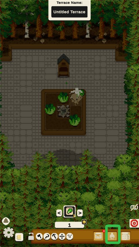 从最初的九宫格农地开始,可通过开垦周边森林来扩展露台规模。