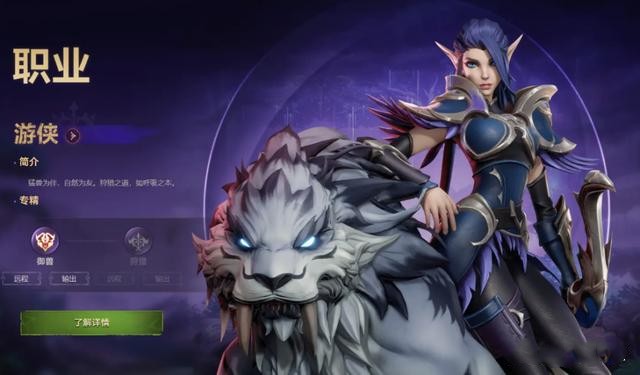 游侠是纯输出型职业。职业分支包括御兽和猎人。御兽游侠可拥有召唤动物伙伴的能力,在战斗中求助于野兽。而猎人游侠以暴击为主要特点,其伤害倍率极高,并可以获得稳定值。但游侠非常的灵活,操作难度大,新手玩家不太推荐