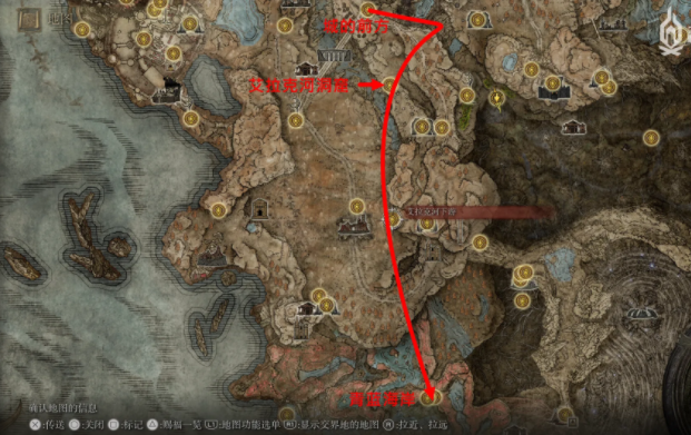 东南方向的地图想要进入,要从赐福「城的前方」往东南走,从东边的峡谷(有个士兵在悬崖边远眺,这里就能往下走)一路下跳来到赐福「艾拉克河洞窟」,然后途径赐福「艾拉克河下游」来到「青蓝海岸」(全部为地下区域)。