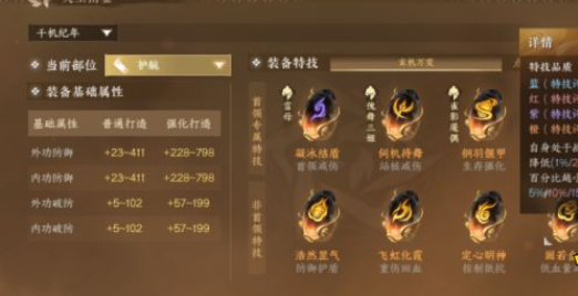 打造效果:自身处于战斗状态时受到伤害降低4%,当前气血百分比越小该效果越高最高20%。