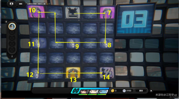 3、到03层后,按照下图路线依次去7-13区域拿奖励,最后去14打完怪后,该副本结束。
