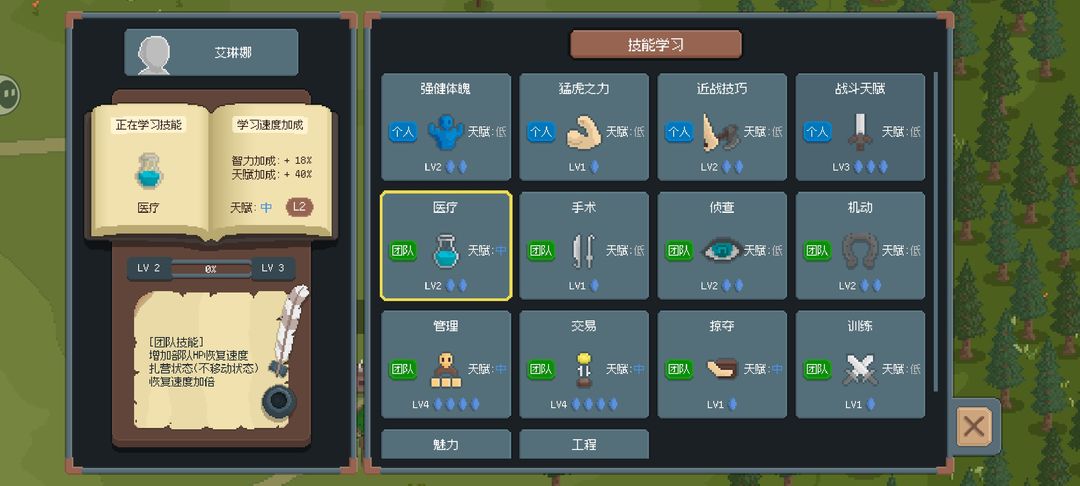 技能技能开局主角选择训练(快速带兵种升级),伙伴选择医疗(保障前期的恢复能力)