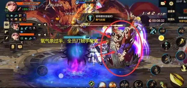 氧气机制:困难罗特斯吸氧不找小水泡,而是击杀珊瑚触手站在附加吸氧,因此需要在氧气条过半时,就3人集合一起打触手吸氧。