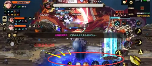 ②打完甲板右舷将直接进入最终BOSS房间,面对罗特斯本体。此时建议两个队伍沟通一波,等辅助队伍即将击杀第一个怪物获得BUFF加持后,主力队伍再进入BOSS房间这样可以获得30秒的高额BUFF加成,提升第一波技能伤害。