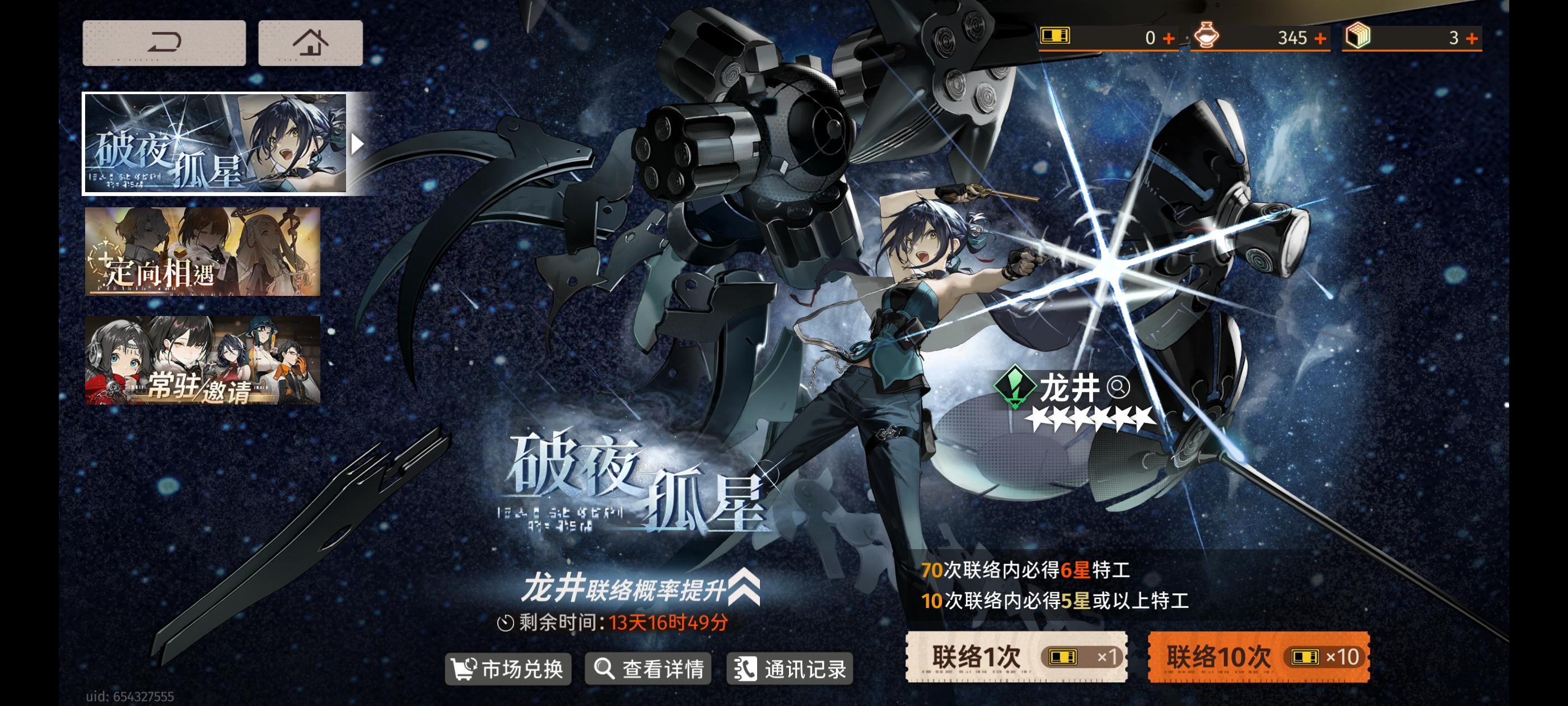 4.抽到恒沙可替换【千秋】, 定向池选择【巫】【净天】或者【音希】,五星特工选【洞明】【朝颜】