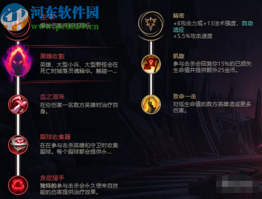 2.下一步是女警的符文推荐,主要就是主宰系+精密系,基石符文的话就选择黑暗收割,在前期的时候可以利用手长优势来叠加黑暗收割的层数,用来提高女警中后期的伤害。