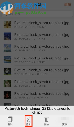3.进入到手机储存界面之后我们就可以找到要进行移动操作的文件了,小编用下图中的图片给大家做演示,选中图片之后长按它,紧接着在界面下方出现的操作选项中选择剪切这个功能。