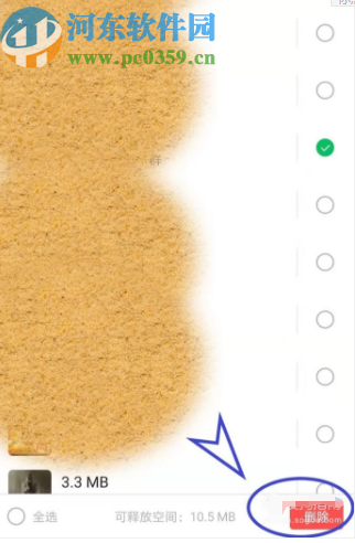 6.点击进入到管理当前微信账号聊天数据这个功能按钮之后,我们在出现的界面中选中想要清理聊天数据的一些聊天对话框,然后点击右下角的删除按钮即可。