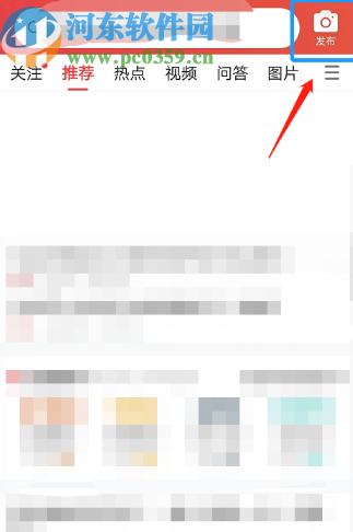 1.首先第一步我们打开今日头条APP之后,点击界面右上方的发布功能图标,有一个相机图标。