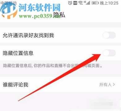 5.最后在应用的隐私设置界面我们就可以看到隐藏位置信息这个功能选项了,然后将这个功能开关打开即可。
