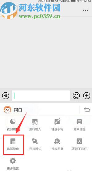 2.点击这个输入法图标之后,我们在出现的界面选项中就可以看到悬浮键盘这个功能模块了,然后我们点击它。