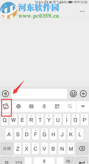 1.首先第一步我们打开手机之后,调出一个编辑文字的界面,然后在搜狗输入法的键盘界面中点击输入法的图标,如下图中所示。