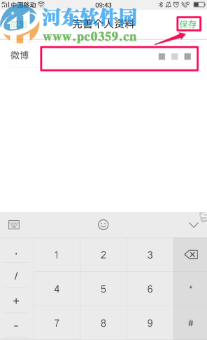 4.点击绑定之后我们在出现的界面中输入我们想要绑定的微博账号,输入之后点击界面右上角的保存按钮即可。
