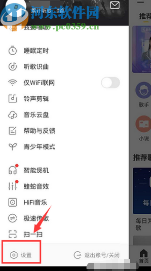 2.点击三条横线图标之后界面左边会出现一个选项菜单,我们找到下方的设置选项点击进入到其中。
